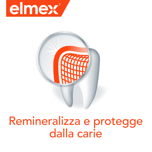 L'utilizzo del colluttorio PROTEZIONE CARIE elmex®, combinato al dentrifricio elmex®, offre una duplice protezione contro la carie.